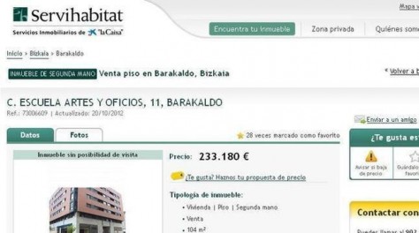 El pis d'Amaia Egaña, que ahir es va llençar al buit a Barakaldo quan l'anaven a desnonar, estava a la venda des de fa mig any a Servihabitat,