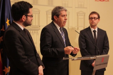 | El secretari d'Afers Estrangers, Roger Albinyana, el conseller Francesc Homs, i el secretari general de Diplocat, Albert Royo. |