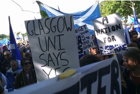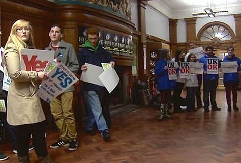 El referèndum, inspirat en experiències com les consultes catalanes del 2009 al 2011, ha anat precedit de campanyes en favor del sí (amb el lema 'Les grans coses comencen amb un sí') i del no ('UK OK') i de debats específics sobre el futur polític d'Escòcia. La presència de ministres del govern i de dirigents polítics al campus, aquestes darreres setmanes, revela la importància que havia adquirit.