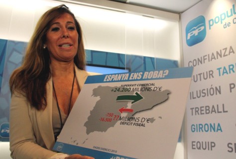 La primera de les infografies que es presentarà en la campanya i que Sánchez-Camacho ha mostrat a la roda de premsa recull informació sobre les balances fiscals i comercials. Posa de relleu les diferents xifres que hi ha en funció de mètode de càlcul del dèficit fiscal, i recull també que Catalunya té un superàvit comercial de 24.200 milions d'euros pels productes i serveis que ven a la resta de l'Estat.