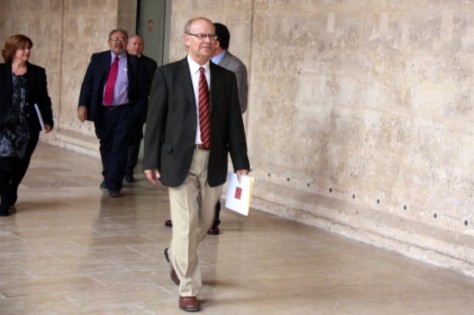 | El nou president de l'Acadèmia Valenciana de la Llengua (AVL), Ramon Ferrer, moments després de ser escollit. |