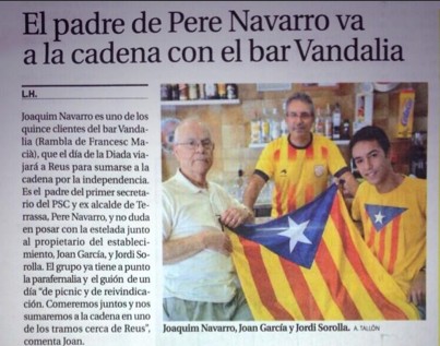 El propietari del bar, situat al barri de Sant Pere Nord, explica que Joaquim Navarro es va apuntar de seguida que va veure que hi havia una llista per a inscriure's a la Via Catalana.