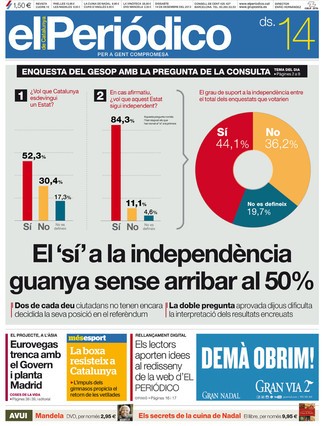 El sondatge el va fer ahir mateix el Gabinet d'Estudis Socials i Opinió Pública (GESOP) per a El Periódico, preguntant a 800 persones els dos apartats de la pregunta anunciada dijous.