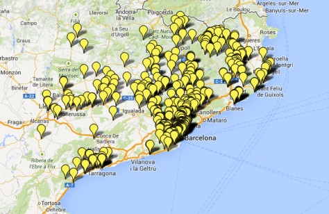 Ací teniu una llista amb els llocs on es pot anar a signar aquest cap de setmana. A continuació els podeu veure indicats damunt d'un mapa.