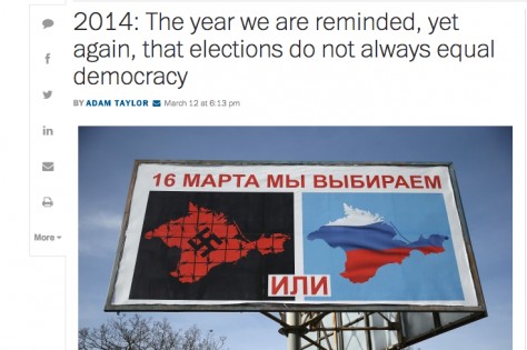 L'article comença recordant-ne un altre de principi d'any a The Economist, que explicava que enguany hi havia previstes quaranta eleccions estatals i que un 42% de la població mundial participaria en alguna votació democràtica. El setmanari britànic qualificava el 2014 de 'gran any per a la democràcia'.