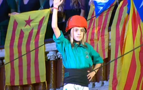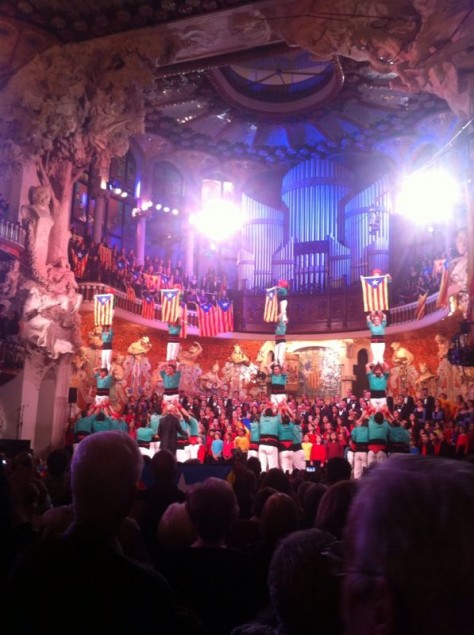 Els Castellers de Vilafranca han fet quatre pilars mentre sonava el 'Cant de la Senyera', el punt culminant del concert de l'Orfeó Català