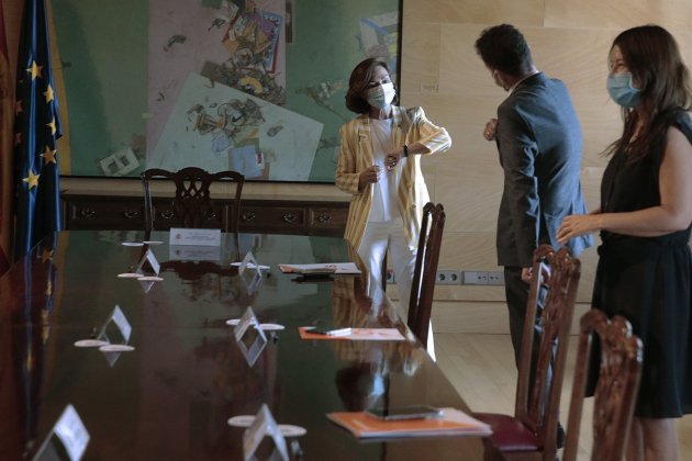| La vicepresidenta del govern espanyol, Carmen Calvo, i el portaveu de Ciutadans al Congrès dels Diputats, Edmundo Bal / EFE |