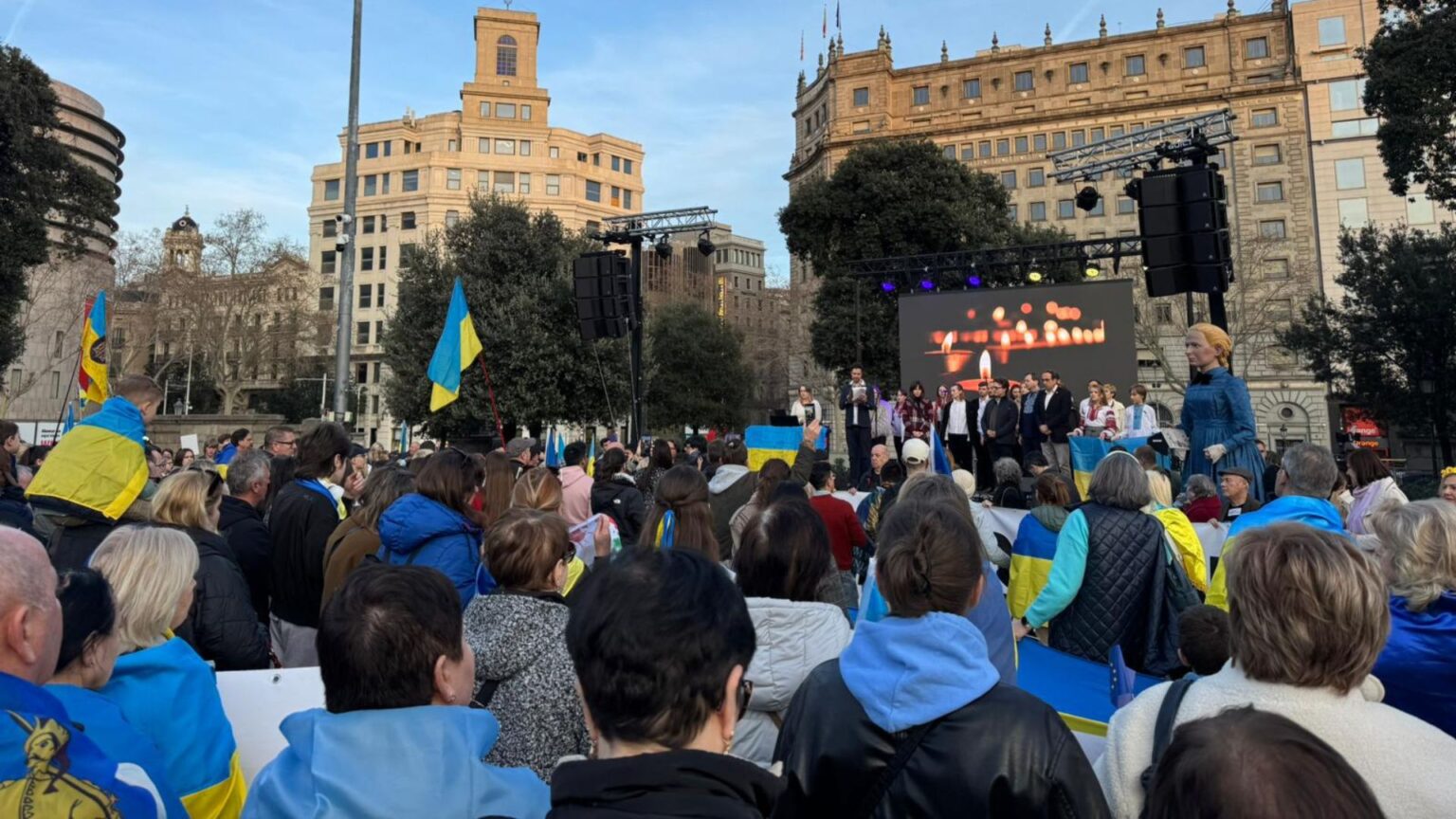 (ACN/Redacció) La comunitat ucraïnesa s’ha manifestat a Barcelona aquest diumenge per denunciar els quatre anys de la invasió russa al país. Convocades per l’Associació d’Ucraïnesos a Catalunya Txervona Kalyna, centenars de persones s’han sumat a la marxa que ha començat a les 17 hores al passeig de Gràcia i que ha acabat amb una concentració a la plaça de Catalunya a partir de les 18 hores.